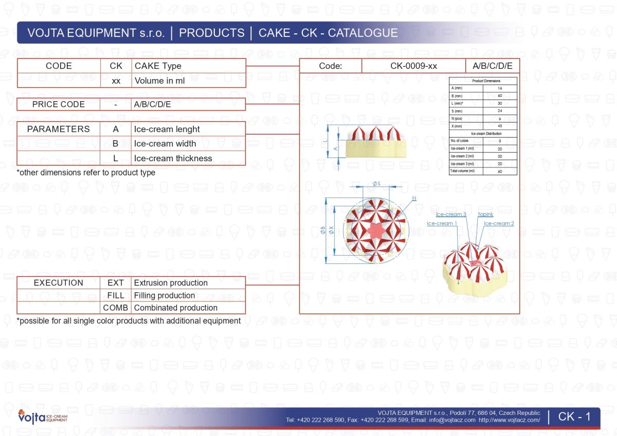 CAKE Ice Cream Products are complex products which can be produced either on vertical extrusion station or on filling station mounted on platform of continuous extrusion line (ARCTIC M, ARCTIC CX or ARCTIC DX) or any combination thereof. CAKE ice-cream shape is made by extrusion of ice-cream through appropriate nozzles. Products are cut with heated wire and slices are accurately positioned on conveyor trays. The shape can be finalised by filling station to reach exceptional shape. Final products are transported into the hardening tunnel, deeply frozen, picked-up and wrapped to get complete product intended for the market. In our portfolio is possible to find a large range of extrusion heads with various shapes and filling possibilities. From classic to special shapes consisting of two or more colours.