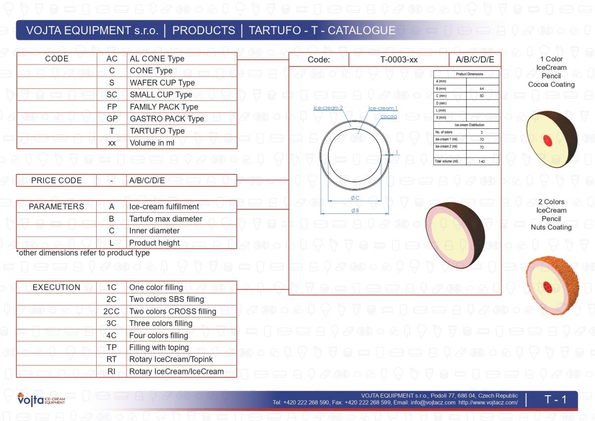TARTUFO Ice Cream Products can be produced on filling station mounted on platform of extrusion line (ARCTIC M, ARCTIC CX or ARCTIC DX). TARTUFO filled ice-cream shape is made by filling the ice-cream through time elapse filling valves (mounted on platform and fully synchronised to the movements of conveyor trays. Pencil injection, more colours and nearly any shape and flavour combinations are possible. The products on the trays are transported into the hardening tunnel, deeply frozen, picked-up, enrobed with dry ingredients (if required) and wrapped to get complete product intended for the market. In our portfolio is possible to find a large range of filling types with various shapes. From classic to special shapes consisting of two colours or toping injection.